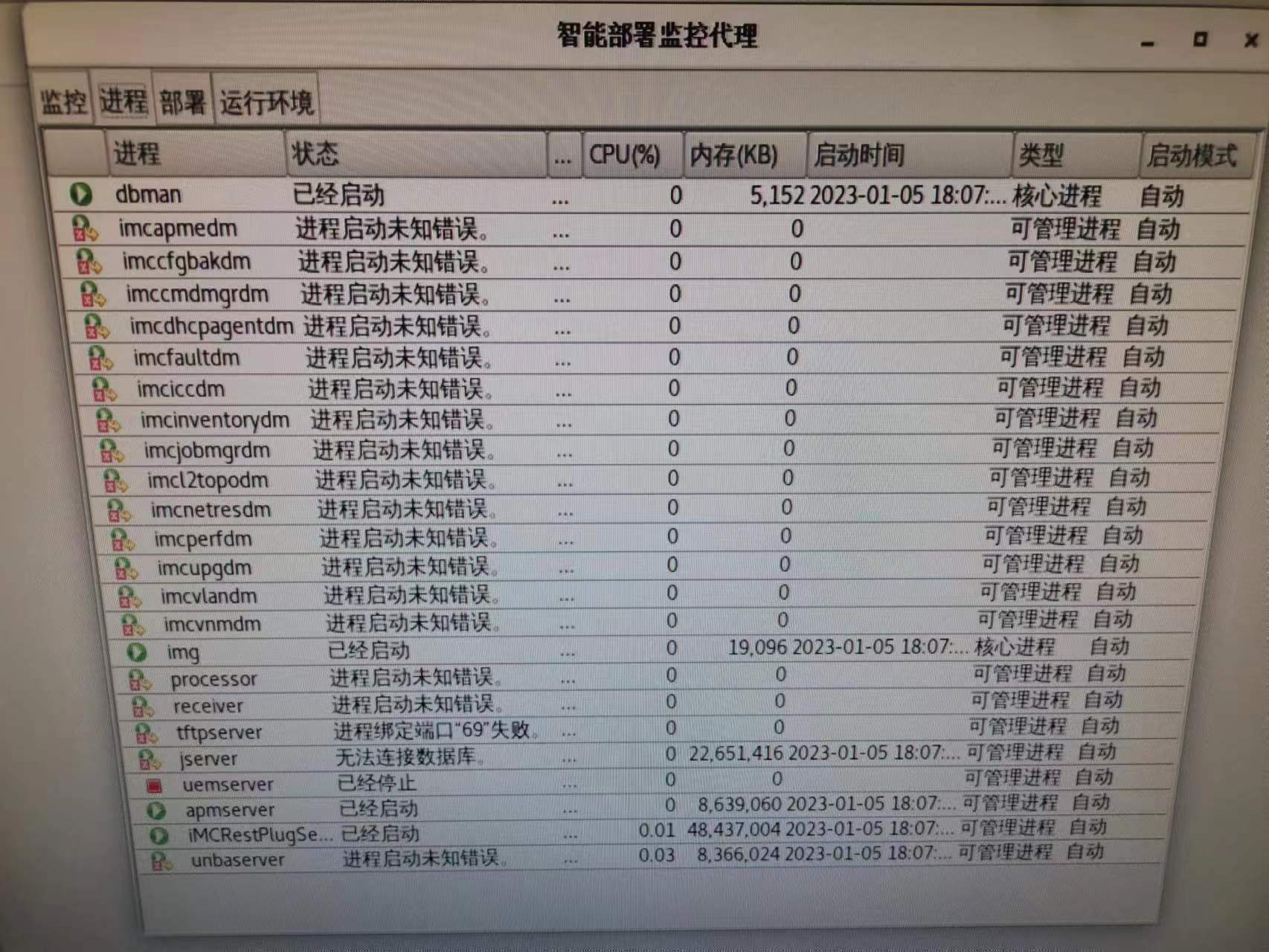 好多进程没起来,收集日志联系400看看吧