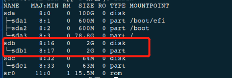 查看磁盘列表lsblk: