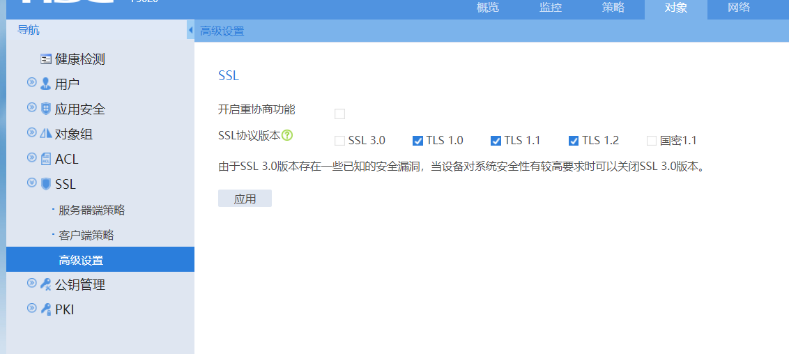 当设备对系统安全性有较高要求时可以通过配置本功能关闭对应版本号的SSL协商。