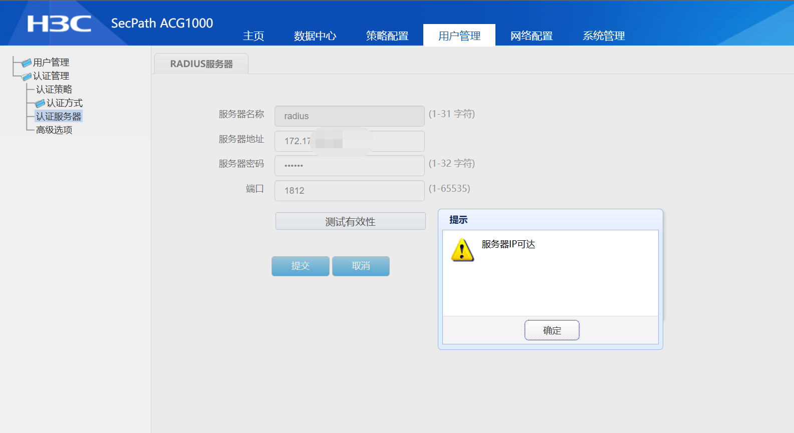 ACG1000-TE 对接第三方radius 是用pap还是chap的,看官网最新软件版本知道6611P21,不支持选pap或chap,radius服务器是pap模式的