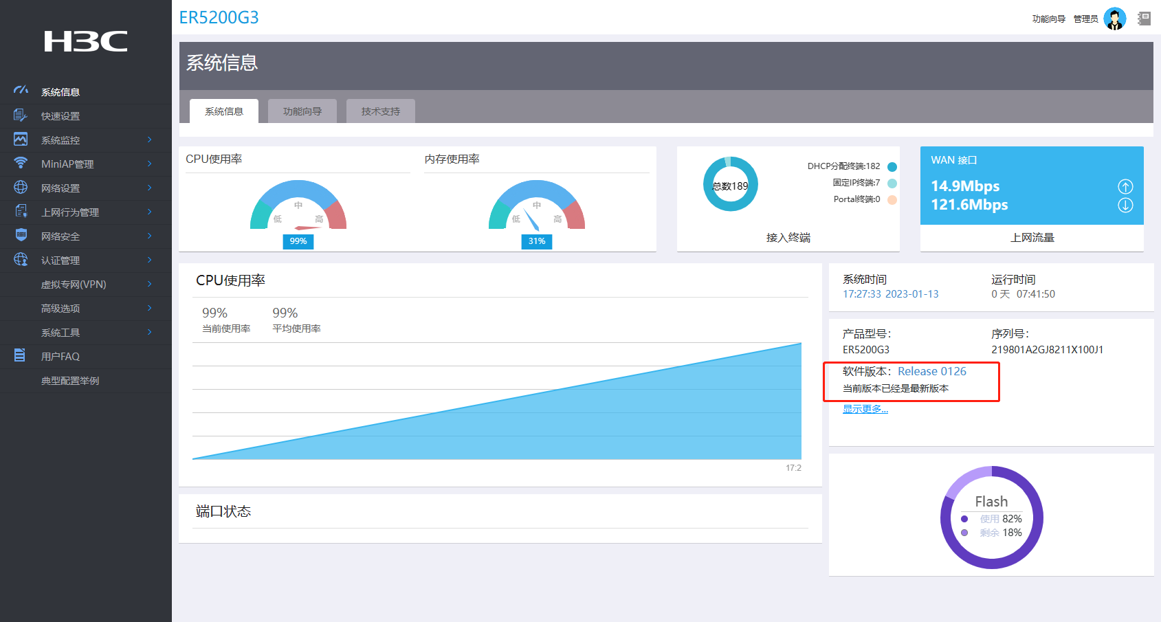 ER5200G3 已升级到最新版本,CPU还是100%,网络经常断网1-5分钟,断网时网关都不通