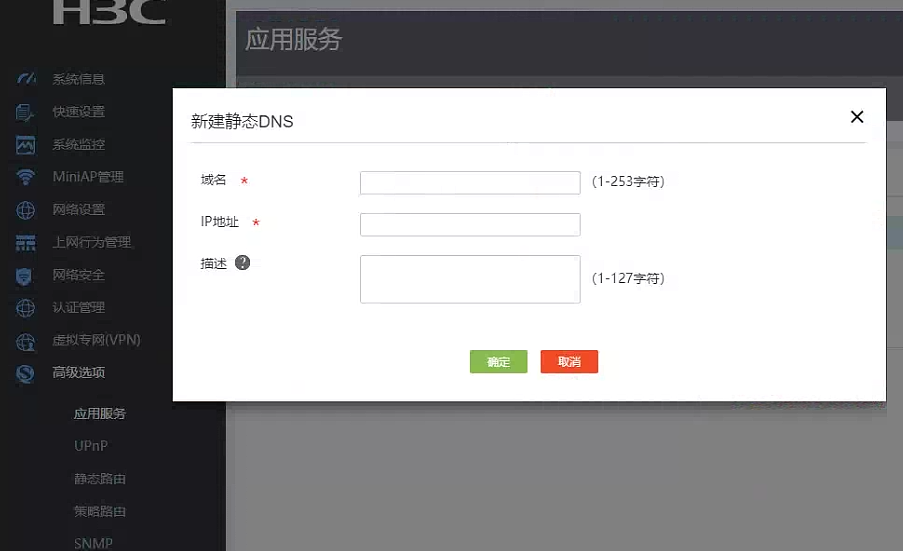 和高级选项-->应用服务-->静态DNS