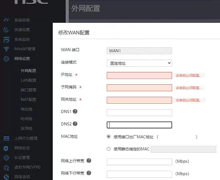 网络设置-->外网设置-->WAN配置