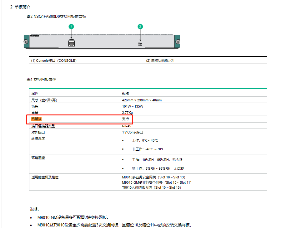 支持,不过M9010及T9010设备至少需要配置3块交换网板,且槽位10及槽位11中必须安装交换网板