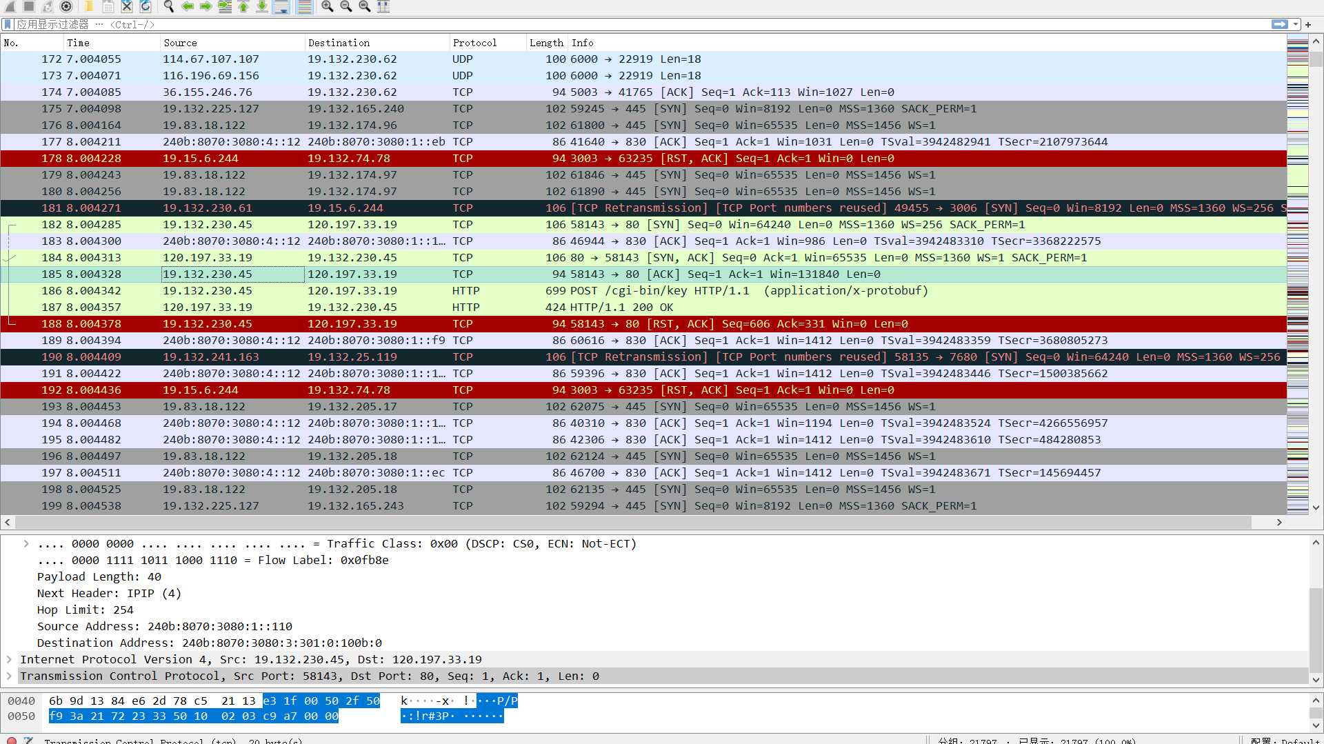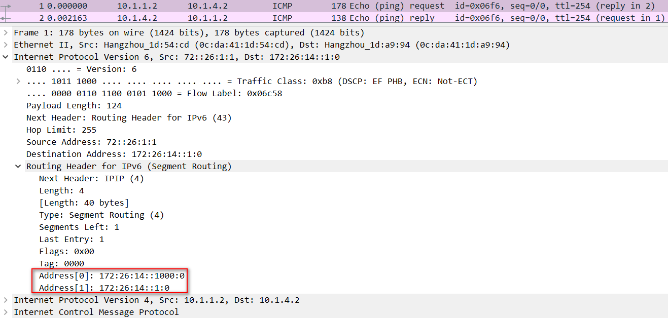 抓包发现,所有报文都没有嵌套SRH报文。我想问的是,正常情况下是否能抓到汇聚上行口的SRv6报文