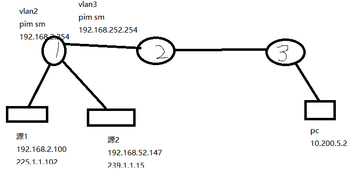 1,2,3接口及vlanif接口都启用pim sm 协议。请问,pc 只能接收239组播组,接收不到225组播组,可能的原因是?