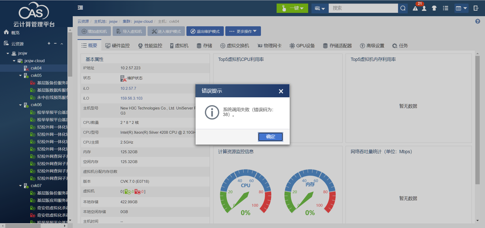 某局点cvk主机因中病毒后准备重装cvk系统,在提醒客户删除主机后,客户只讲主机进入维护模式,在不知情的情况下将主机重装后,在前台页面发现之前维护状态的主机无法退出维护模式,也无法删除,要如何才能清除或者替换之前的主机信息
