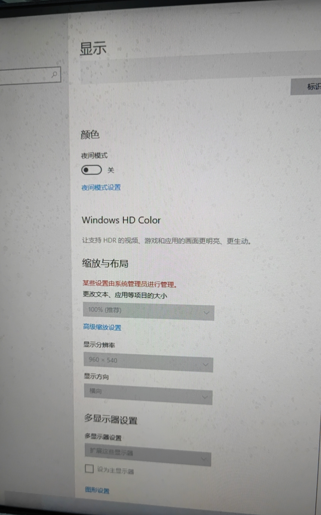 场景中个别台虚拟机桌面大小有问题、在维护模式更改了虚拟机分辨率大小1920x1080、开机后分辨率变成了960x540、提示某些设置需要系统管理员设置。在哪里更改麻烦大神告诉一下
