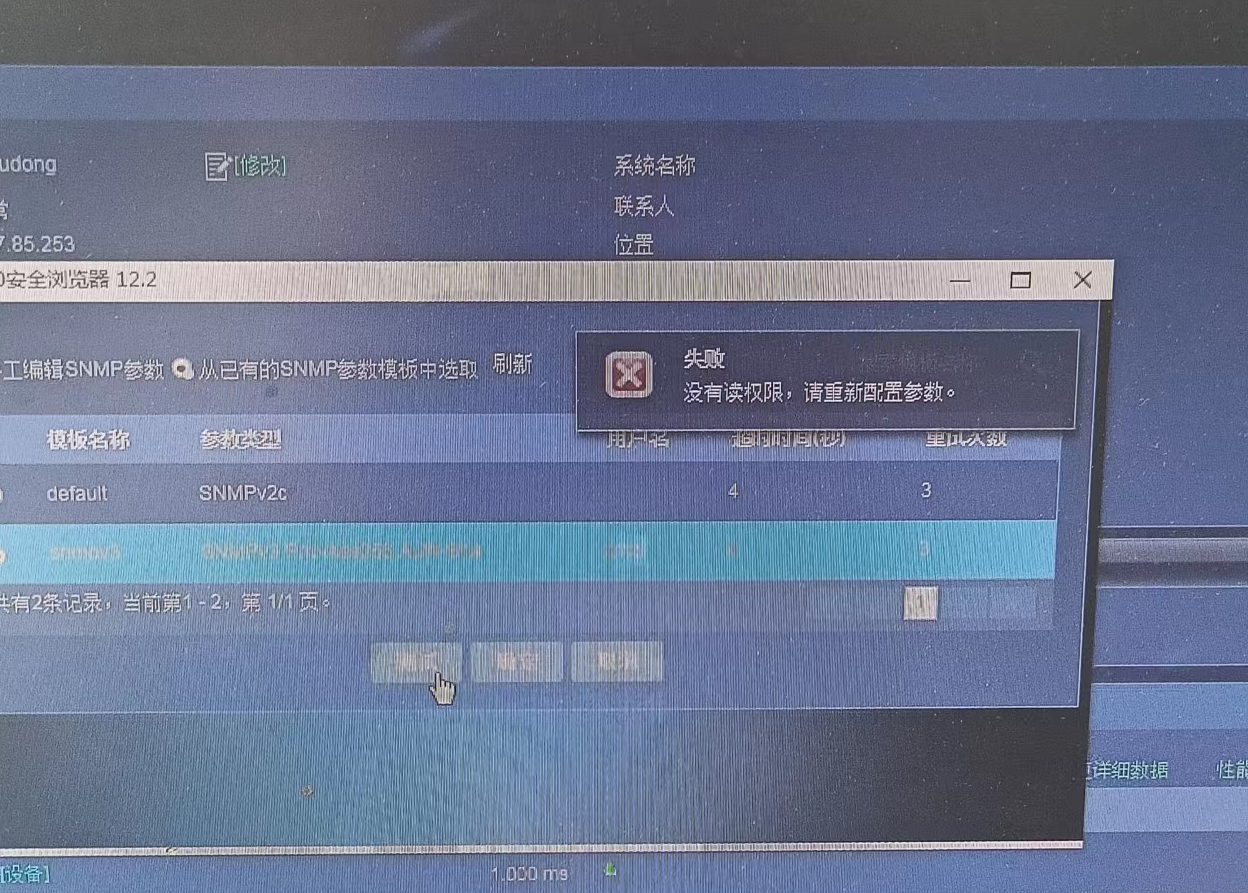 没有读取权,从新配置参数,是要从先配置SNMP吗