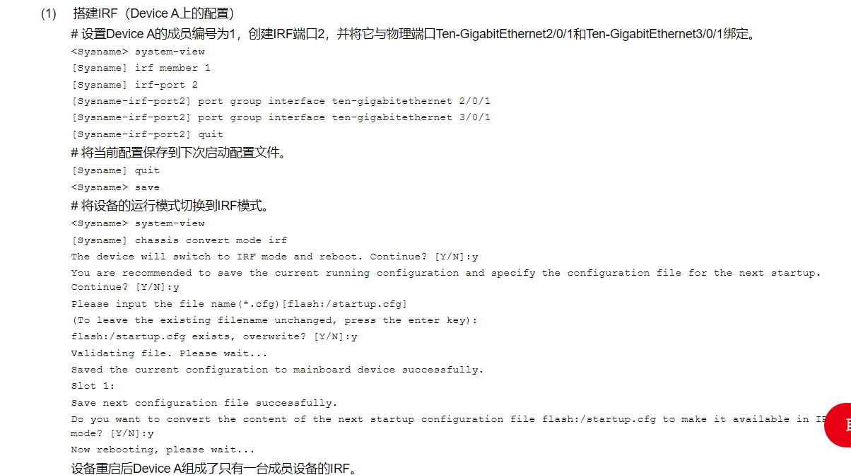 交换机7506x-g,按手册配置irf堆叠不成功,主机成员编号不成功