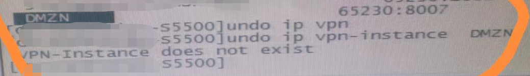 昨天在配置MPLS VPN的时候新建了一个VPN,命名本来为DMZ_VPN,但是写入交换机之后名字变为了DMZN。当时也没注意,把RD值也写上了,现在的情况就是这个通道进不去,无法删除,无法绑定。目前是否只有不保存配置然后重启的办法