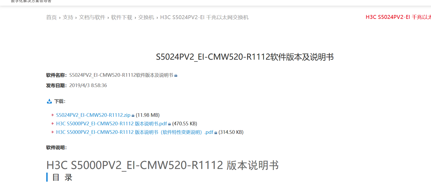 H3C S5000V3_EI-CMW710-R6343P08 版本软件及说明书