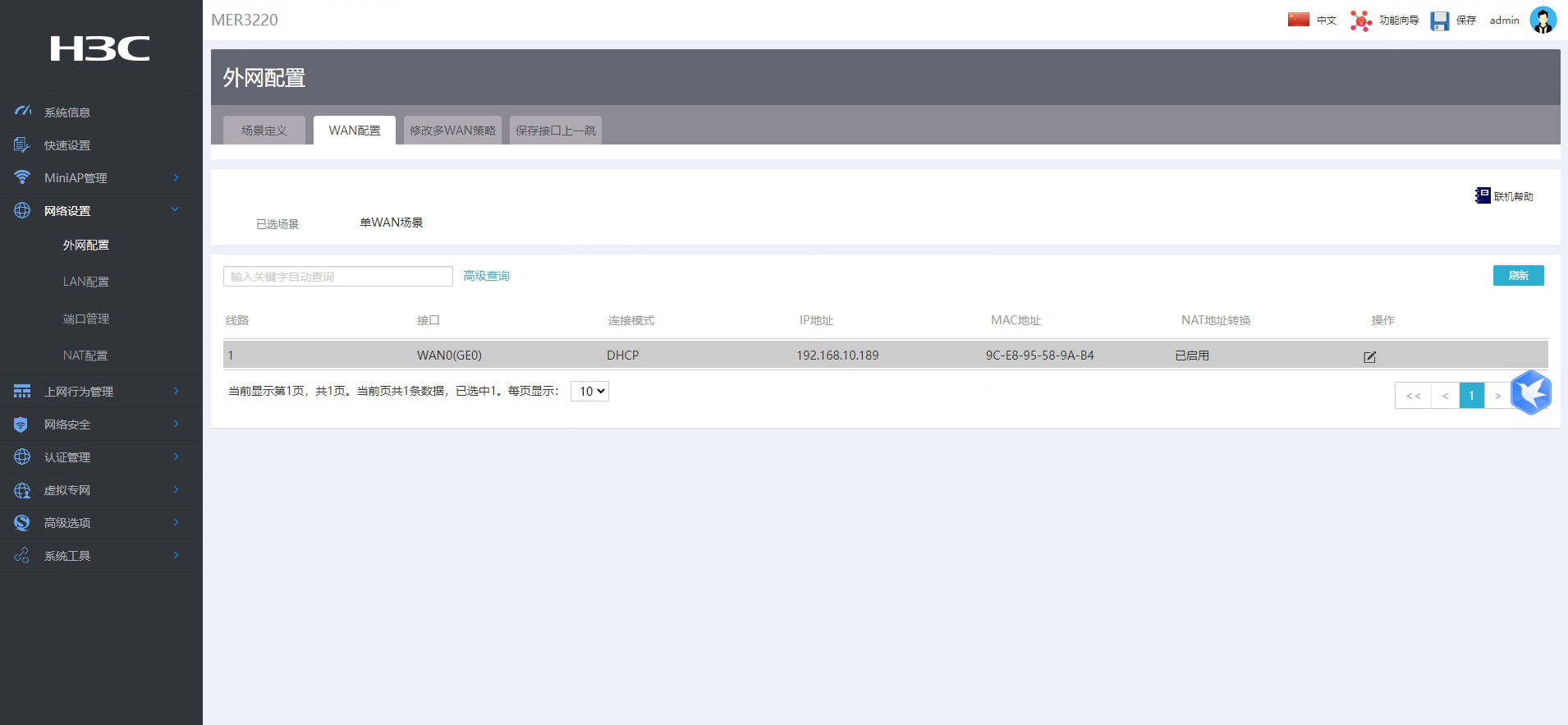 在设备Web管理页面的导航栏中选择“网络设置>外网配置”,单击“修改多WAN策略”页签,根据多WAN所属运营商的情况,可选择不同的模式: