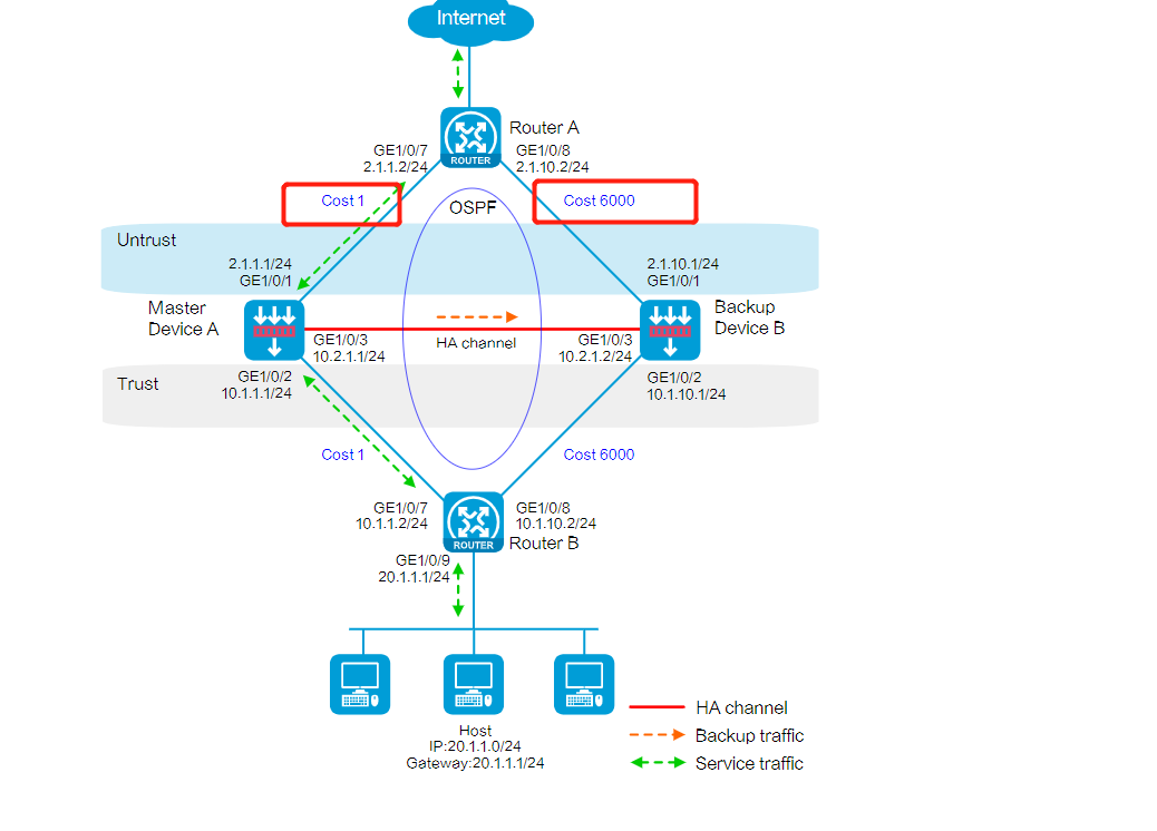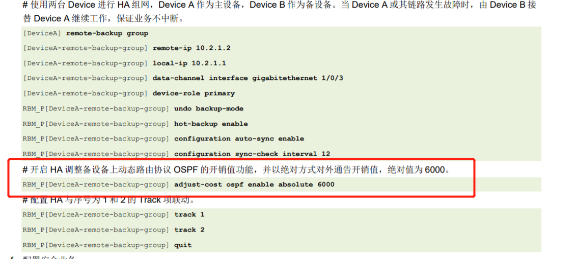 rbm+ospf,为社么官网的参考配置图上写的主cost1、备cost6000,给的配置案例发布的都是cost6000呢