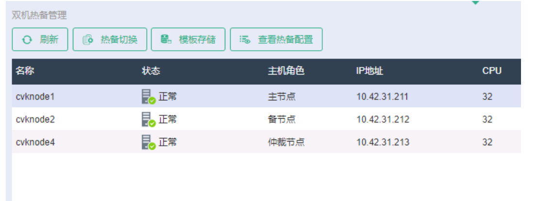 模拟主控制台节点故障(关机重启)后,无法通过虚拟IP地址打开平台,一直持续到故障主节点物理机启动完成后能打开WEB界面;进入双机热备管理界面查看当前主备关系,模拟故障的这台主节点仍然为主节点,备节点没有完成管理台的接管工作。