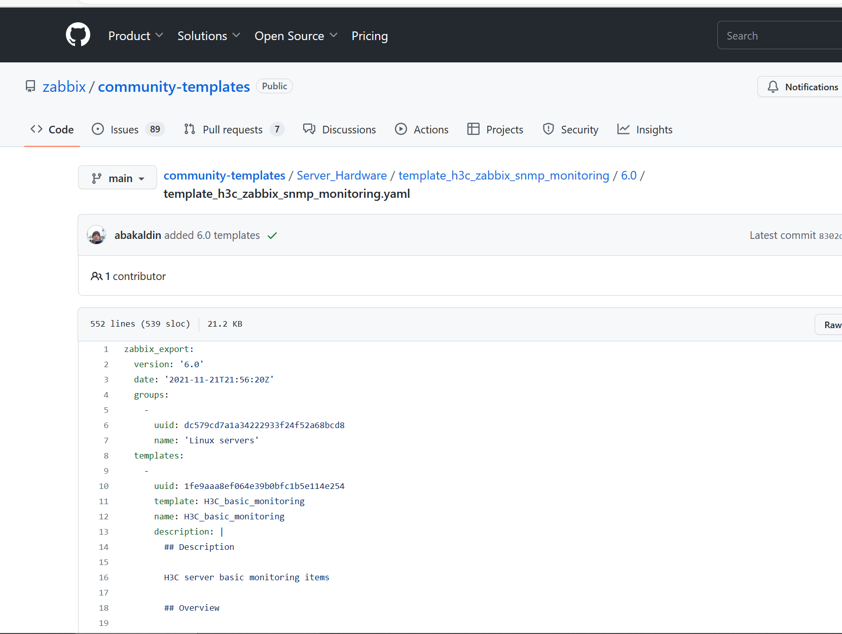 用ZABBIX网管平台监控H3C L5060,导入ZABBIX的监控yaml格式模板哪位大神有,官网只搜到服务器和无线的