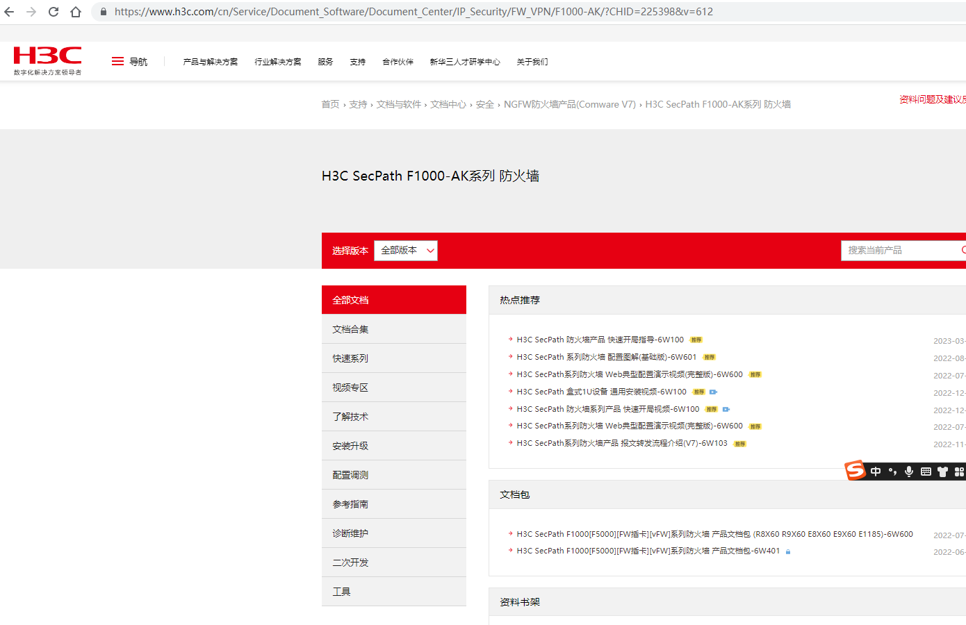其他手册:https://www.h3c.com/cn/Service/Document_Software/Document_Center/IP_Security/FW_VPN/F1000-AK/?category=225405