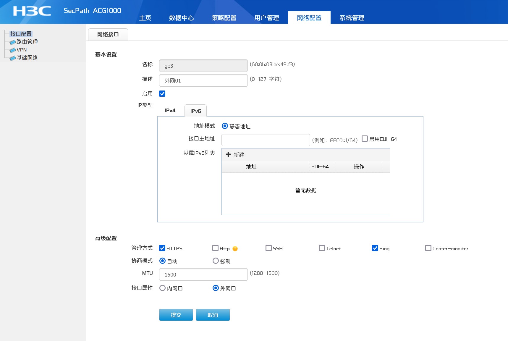 ACG1010-X1 外网端口无法设置IPv6地址动态获取 仅支持静态设置