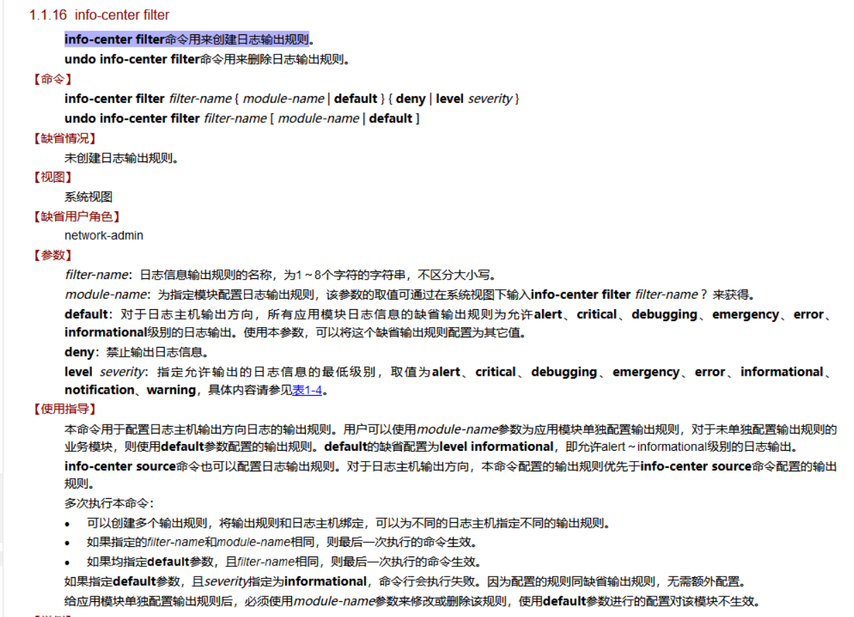 使用 info-center filter命令用来创建日志输出规则把