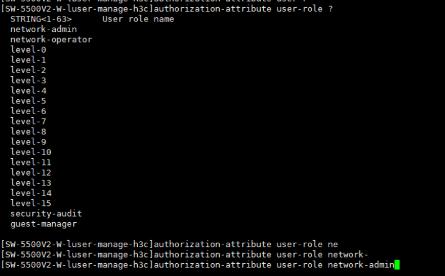 [H3C-luser-manage-h3cjauthorization-attribute l % unrecognized command found at 'A' position. [H3C-luser-manage-h3cjauthorization-attribute l % unrecognized command found at 'A' position. uthorization-attribute L l后面没有levle的命令