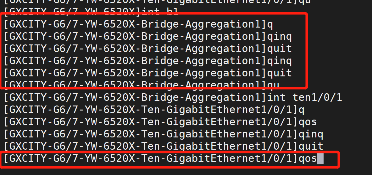 6520交换机为啥在聚合组里不能配置qos呢,只能在接口下配置,6800交换机都可以在聚合组里配置qos