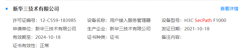 商用密码产品认证证书