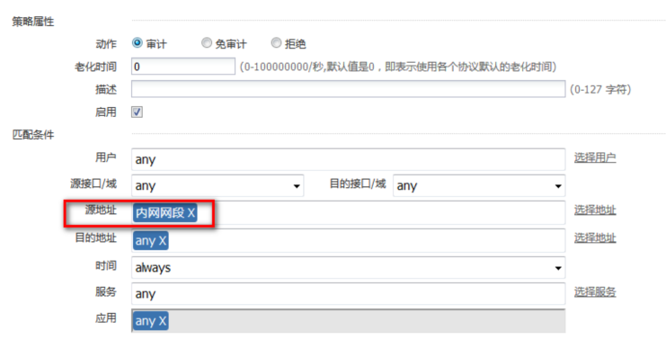 # 点击“上网行为管理”“策略配置”IPv4策略”,点击“新建”,源地址参数选择创建的“内网网段”。
