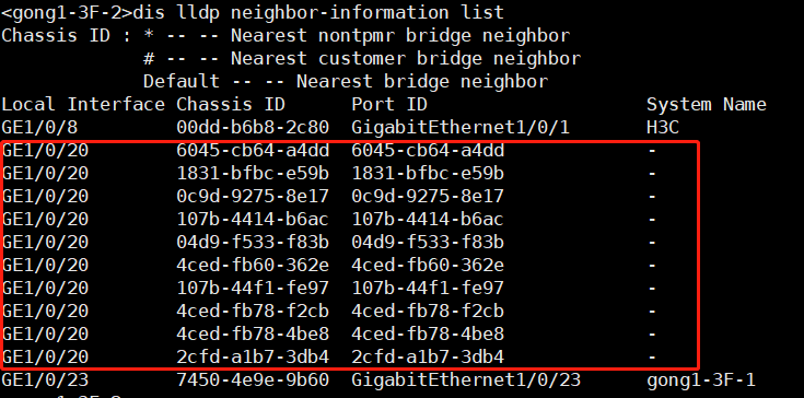 这个端口下面只接了两台交换机,但是邻居却显示那么多