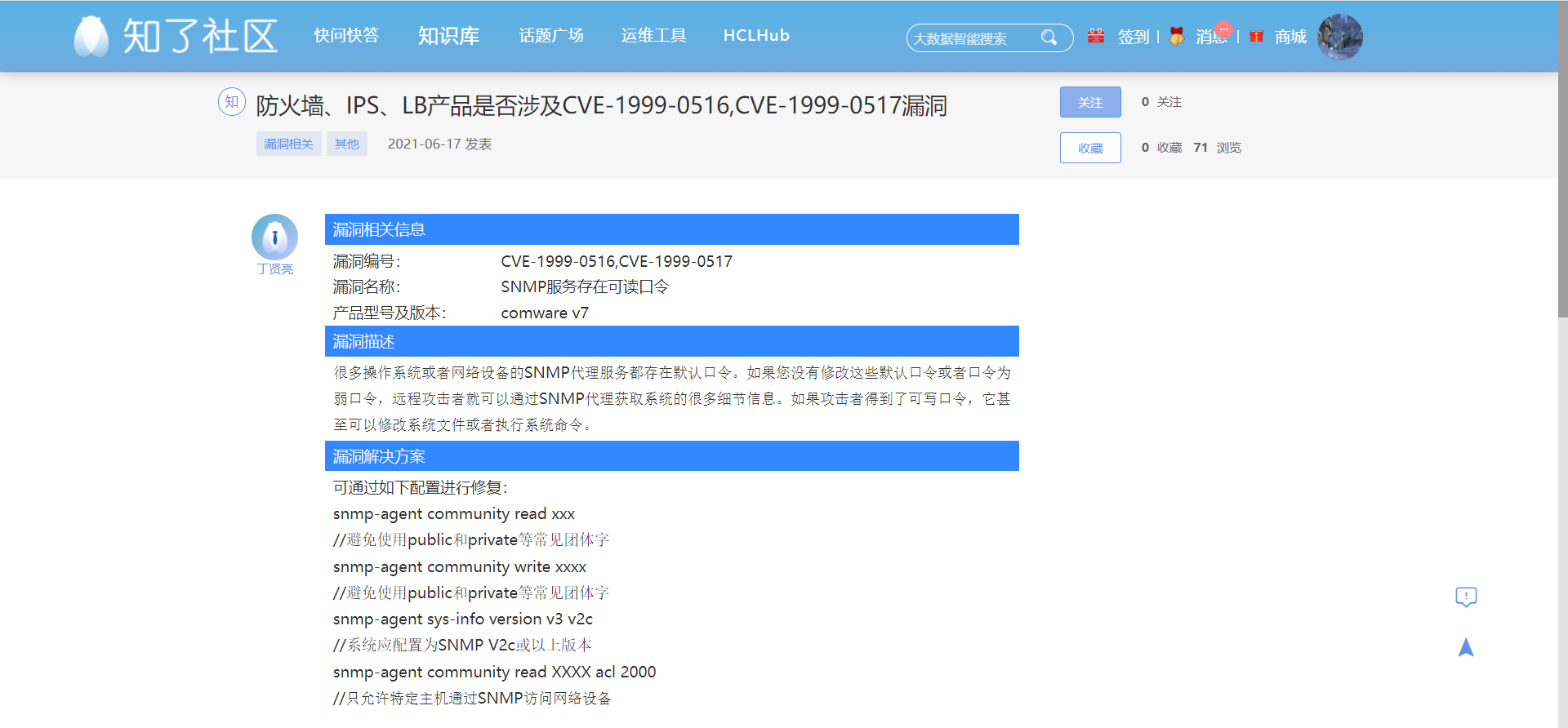 H3C S7506X Version 7.1.070, Release 7596P09交换机通过绿盟漏扫发现存在CVE-1999-0516漏洞,如何解决