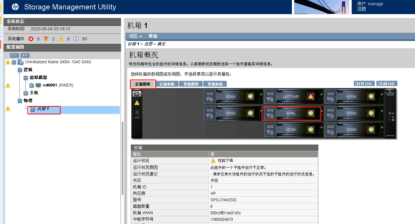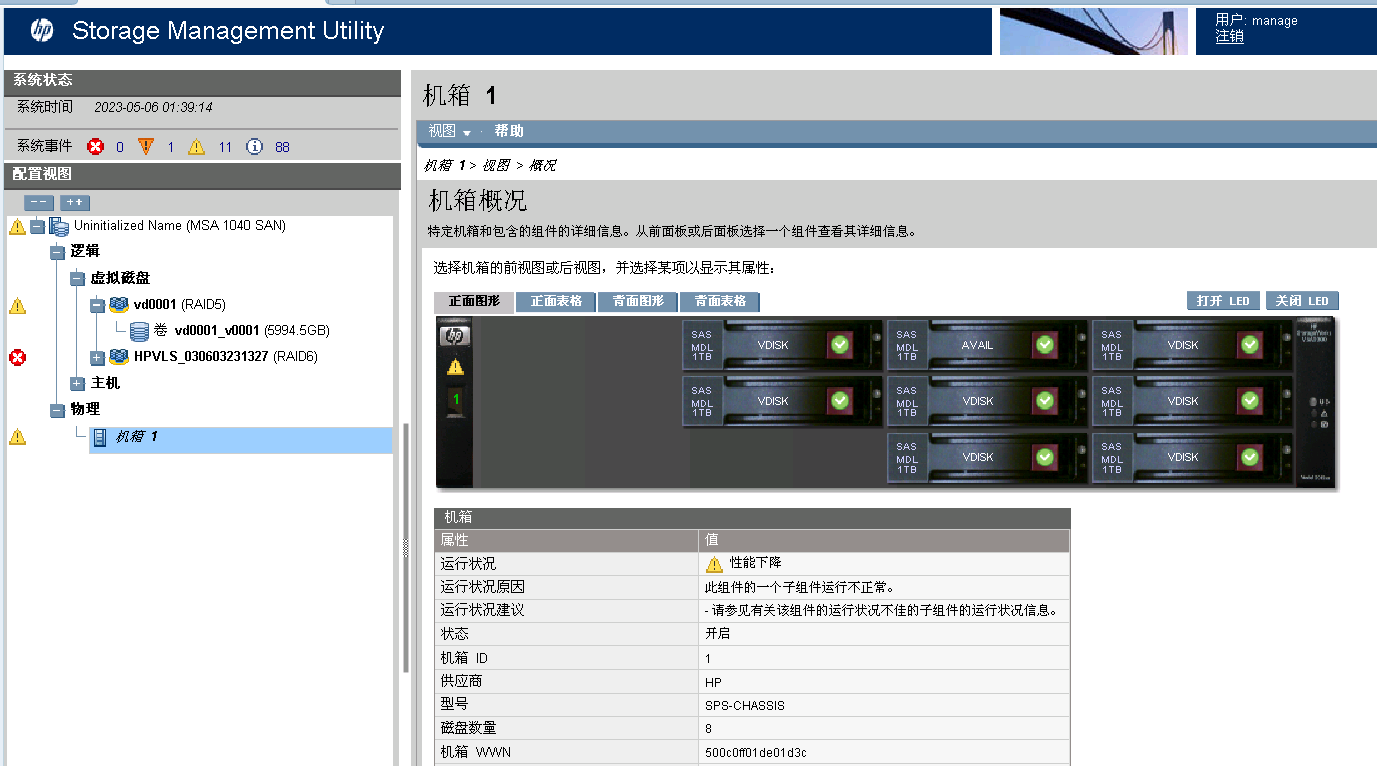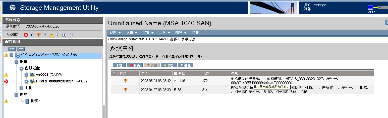 HPVLS那个虚拟磁盘都已经被隔离了,先前发生了什么?经历过意外断电?RAID6里面有超过2块硬盘故障?