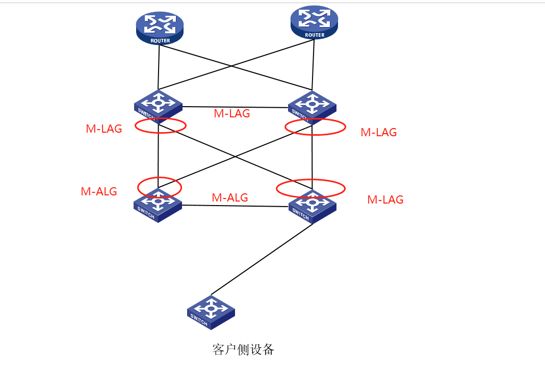 如图:接入交换机是M-LAG,下联设备只能单边接入,应该如何配置业务才能正常使用
