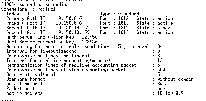 参考的这篇文章https://zhiliao.h3c.com/Theme/details/124915配置,winradius测试能通过