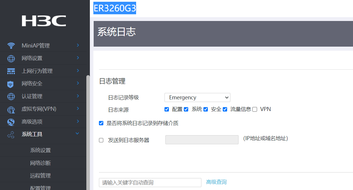 (1) 单击导航树中[系统工具/系统日志]菜单项,进入系统日志配置页面。设备会逐条显示日志的生成时间、级别以及详细信息。