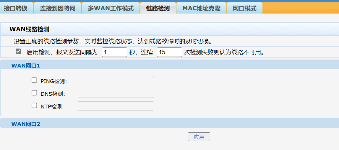 页面向导:接口管理→WAN设置→链路检测