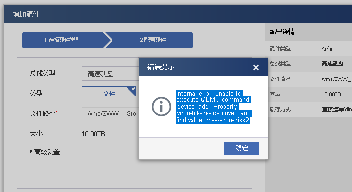 正确的步骤应该是:增加硬件--硬件类型选择存储--总线类型选择高速硬盘,点击文件路径搜索框,找到共享存储lun,点击新建存储卷,写好名字就OK了。