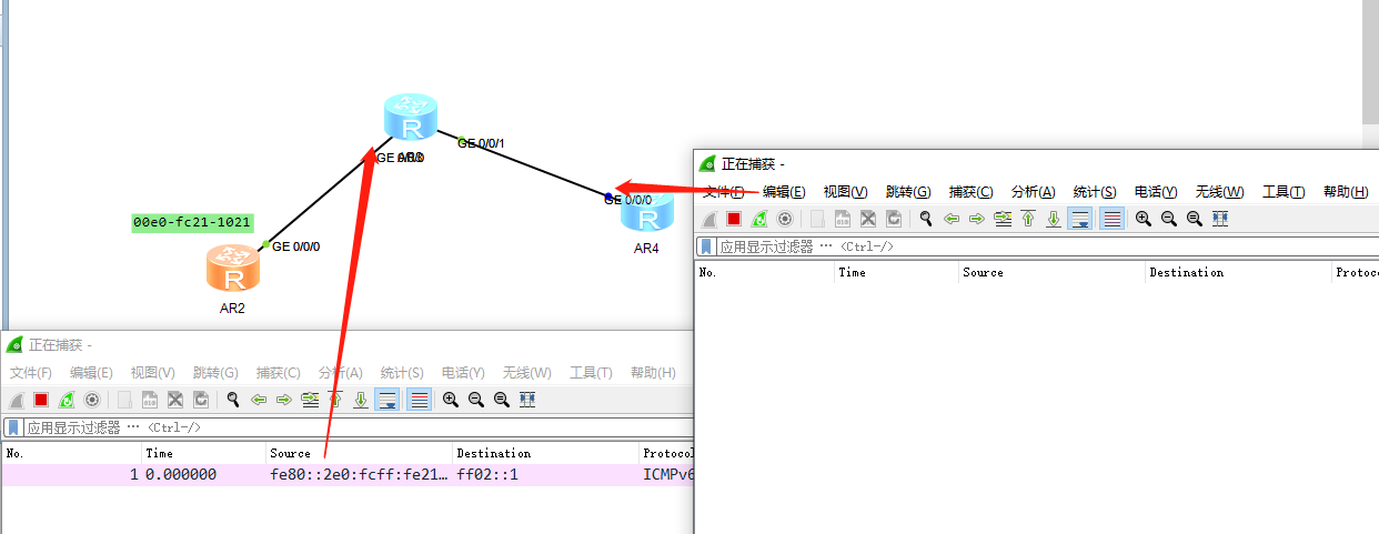 “ipv6中链路本地范围内所有路由器的组播地址ff02::2”,此处已经说明了是”链路本地范围内“,有效范围是同一个二层链路,就如下面这个实验一样,AR2开启通告RA报文(组播),AR4是无法收到该组播报文的。