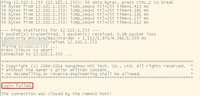 S5560 telnet登录直接退出 #login failed