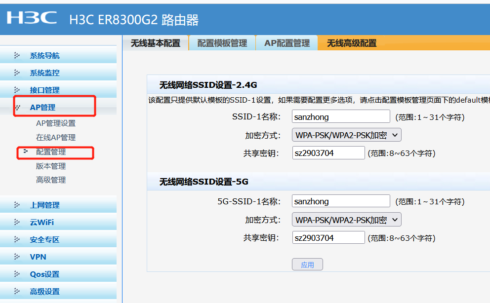 您可以按照以下步骤设置H3C ER3200G2路由器的WiFi名称: