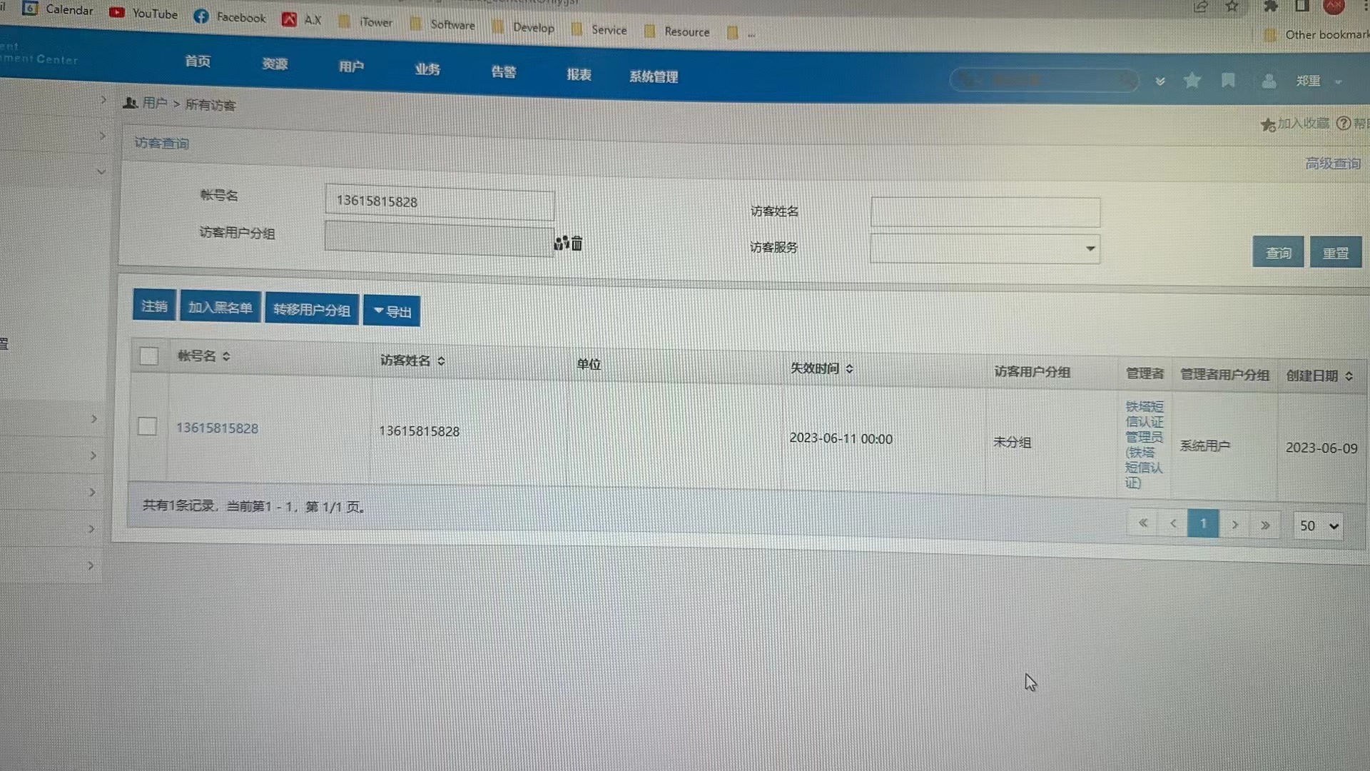 IMC短信认证提示用户不存在,但可以看到在线用户信息