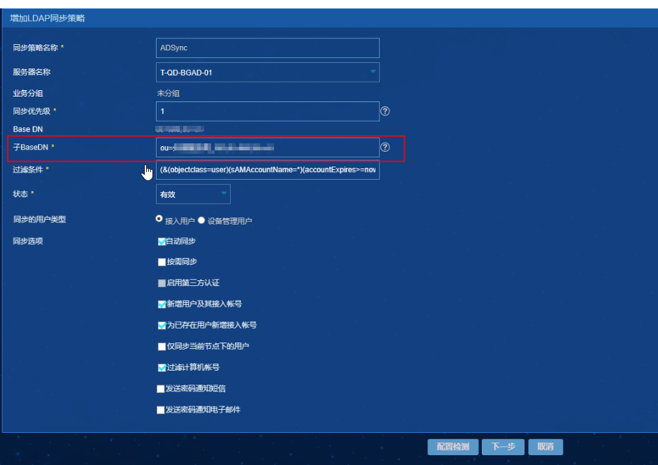 如果要控制同步账号筛选的话,要么明细多个ou同步策略。要么通过过滤条件实现。