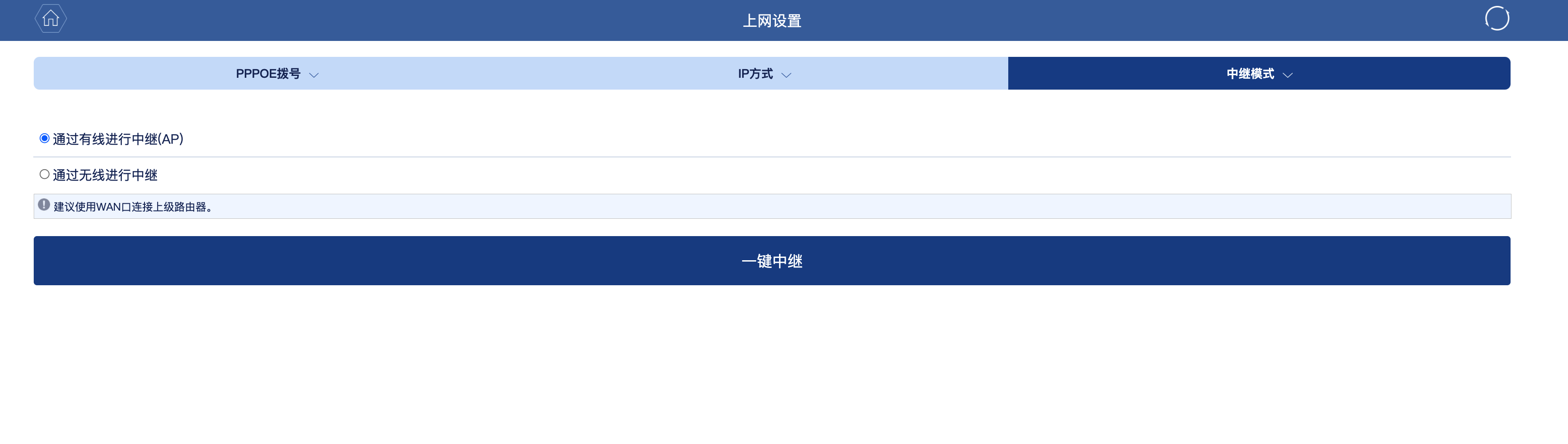 手里有两台路由器,一台是NX30,可以设置为“有线中继”,但是MC102-G没找到对应的选项,请问如何开启MC102-G的“有线中继”呢?