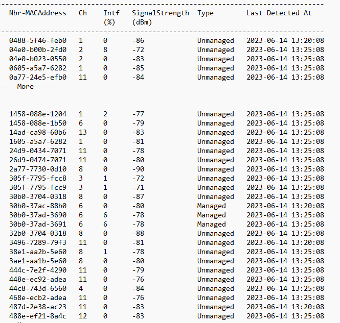 小白想咨询下大家在AC上面通过命令display wlan rrm-status ap all,反馈的值能判断出某个AP的信道干扰吗?或者说是根据某项或某几项得出的值来判定信号干扰吗?这个阈值怎么来衡量干扰或强弱,小弟贴出几个查询到的值,请大家帮忙解答下困惑。(是重点关注Intr干扰的百分比吗?)
