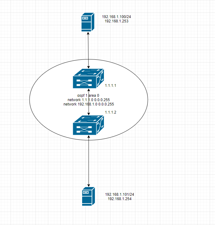 如图,需要两边终端配置同段ip不同网关。过ospf可以同吗