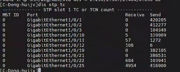 disp log看一下日志,看看从哪个端口接到的tc报文