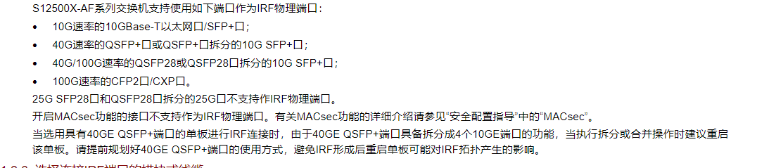 没有更多的40G口的话,建议全部用10G,或者就用两台的单个40G口也行(记得配BFD双柱检测),不建议一个irf组里有多种速率的口,这样做甚至irf可能会不成功,