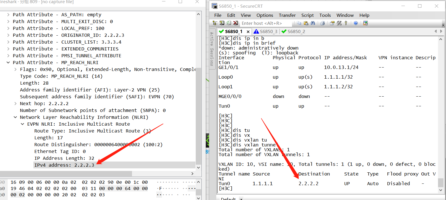 ”字段不一致,这两个字段我通过查资料发现都应该是标识VTEP的隧道源的,但现在两者值不一样是什么原因导致的呢?并且隧道的地址也并不是我设定的loopback 1;而是evpn的邻居loopback 0地址。【模拟器场景下模拟的结果】