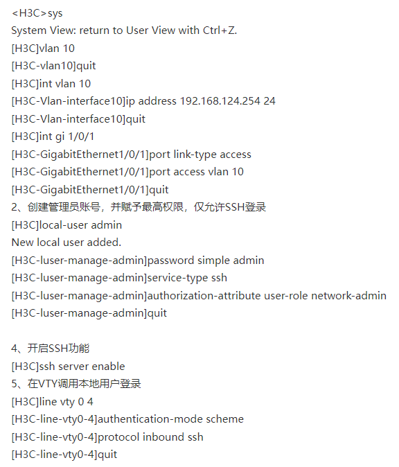 [H3C] line vty 0 4