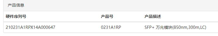 210231A961N16C007143 0231A961 光模块-SFP-GE-多模模块-(850nm,0.55km,LC),查看一下这个没有显示是千兆还是万兆的,你那边能确认吗