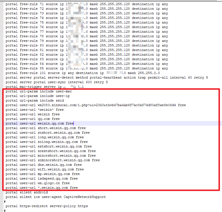 请教下图V5 AC上配置的portal user-url xxx 这几行的配置