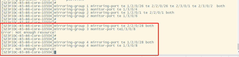 在H3C-10504设备上配置本地镜像组,只能配置2个镜像组,配置到第三个镜像组时提示error:not enough resource